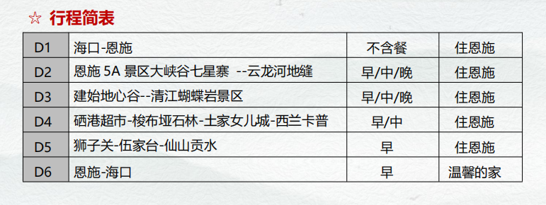 您行程(cheng)的(de)情況。可(kě)自由活動(dòng),逛大(da)街(jiē)小(xiǎo)巷,品(pin)恩施特色美食!!